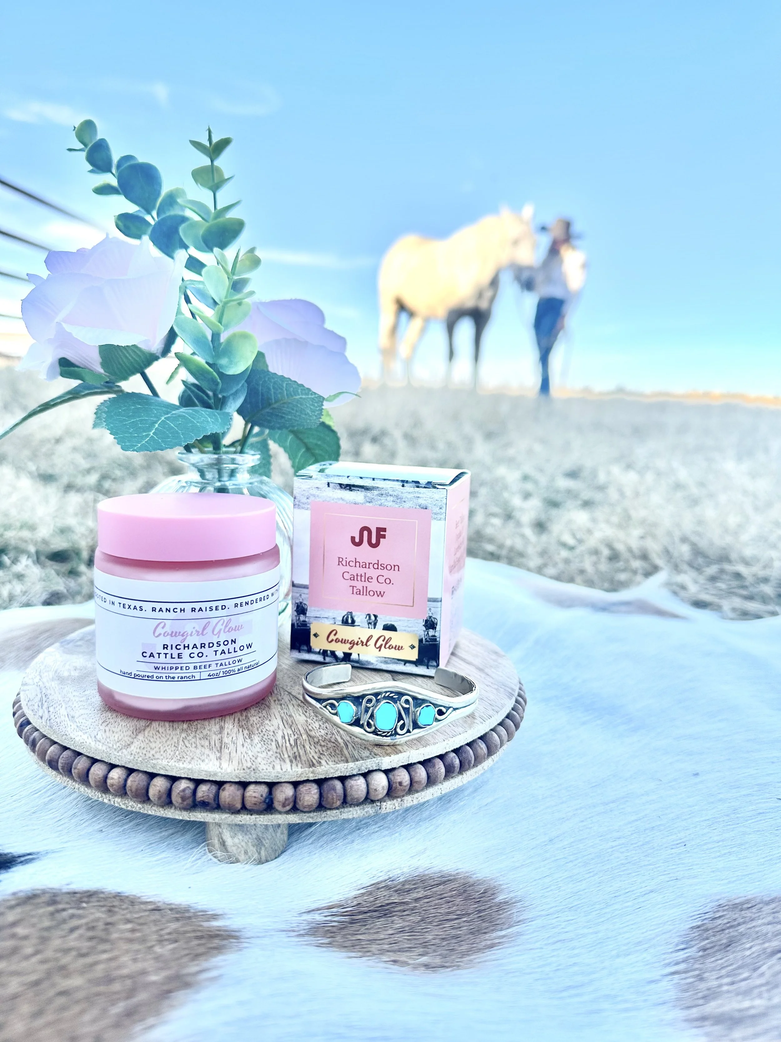 At Richardson Cattle Company, We’ve spent generations raising cattle with intention, integrity, and commitment. From birth all the way to processing (approximately 18 months) our animals are cared for and tended to the best of our ability. Our suet is hand picked using the product from our ranch, or from other local Texas ranches who ranch with similar practices that we use. What we love about suet is that it is from our Creator, not man made in a lab; and we have a peace knowing that we are making a product that is restorative, healthy and free from toxins that so many products today have. The suet is then rendered for 4 days for 8 hours each day, allowing it to get into the purest form possible. Once rendered, it is then weighed to the exact amount needed for the oils that have been precisely chosen for each kind of cream. The tallow is then whipped to the perfect consistency that is found in every jar, not too pasty and not too runny; once whipped it is specifically prayed over and hand poured into each jar. The jars are then placed into boxes that have been designed with pictures from the ranch, giving the product the luxury look you find in high end stores. We believe the marketing will sell the tallow, but the amazing product will keep you coming back for more. Tallow has been a healing balm to so many, and we have seen the amazing results our family has had from using this cream, and we pray it is that to you as well.